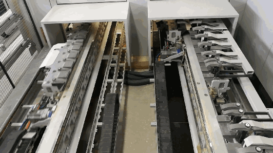 自动化生产线前端巨大的缓存系统可实现200根工件的存放,保证不同系统门窗的工件分类、缓存及加工的连续性。